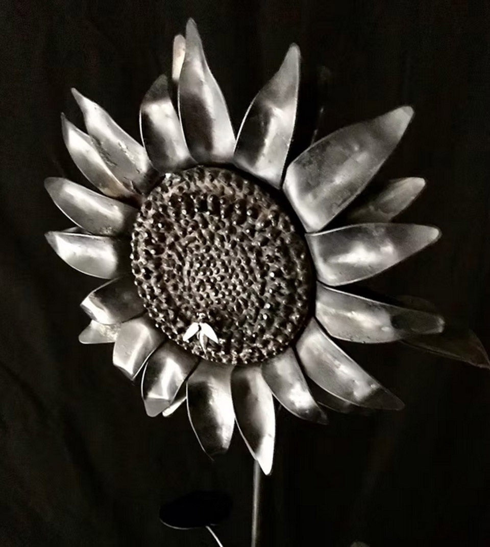 Realizzata nel 2018 per una collezione privata a Ferrara, Bee on Sunflower è in ferro battuto brunito e acciaio inox (44x195x44 cm). Inserita in giardino, la scultura esalta il legame tra natura e arte: l’ape e il girasole si trasformano in simboli di armonia, capaci di donare energia e vitalità allo spazio verde.