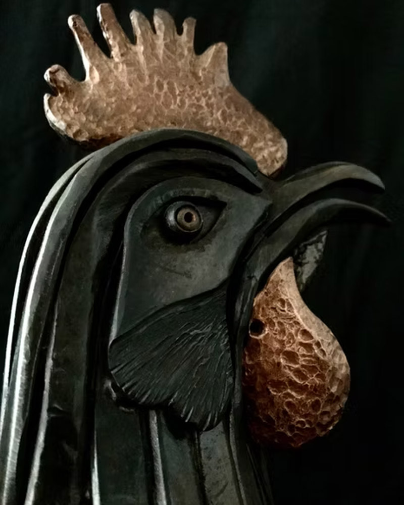 Il Royal Rooster (2018), oggi esposto a Palazzo Colonna, Roma, è in ferro battuto e rame (53x62x22 cm). All’interno di un giardino, la sua presenza maestosa trasmette fierezza e forza, trasformando lo spazio in un ambiente scenografico e suggestivo, che cambia aspetto con la luce del giorno e delle stagioni.