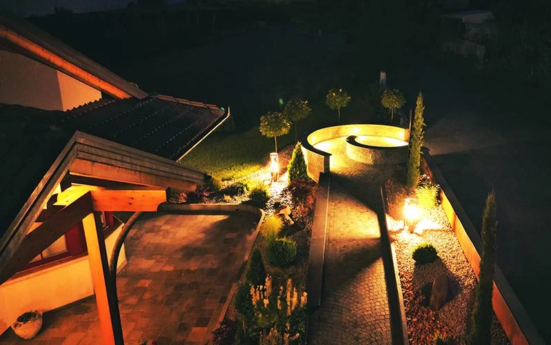 Creiamo atmosfere suggestive con sistemi di illuminazione studiati su misura. La luce valorizza il giardino, rendendolo sicuro, elegante e fruibile anche nelle ore serali.
