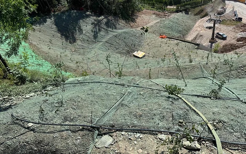 Tecnica avanzata di semina per terreni difficili o scoscesi, combinando semi, fertilizzanti e pacciamatura. Garantisce verde uniforme, stabilizzazione del suolo e rinverdimento rapido.